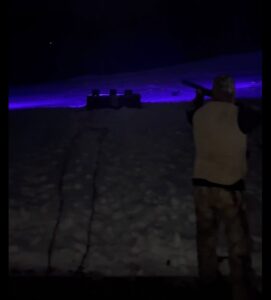 What: Shooting lit clays in the dark (black light clay target shoot)